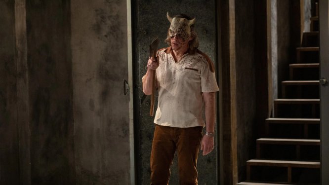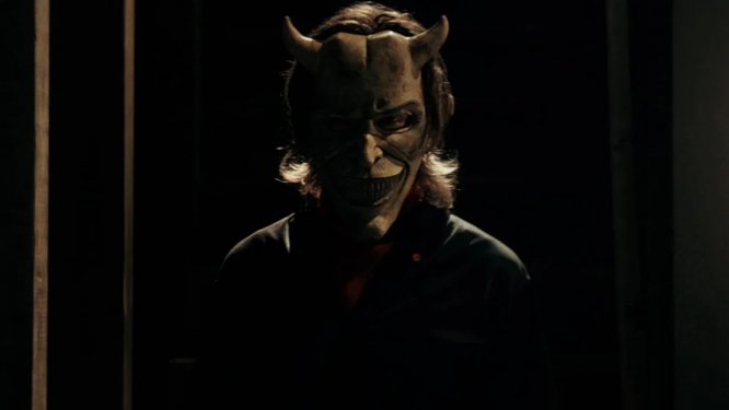 Большую часть фильма мы проводим вместе с Финном в ужасном, звукоизолированном подземелье. Он отчаянно ищет способ выбраться наружу, даже пытается сорвать занавеску с единственного окна, расположенного высоко на стене. Но попытки тщетны, и Мейсон Темз убедительно передаёт нарастающий страх и чувство беспомощности Финна с каждой минутой.