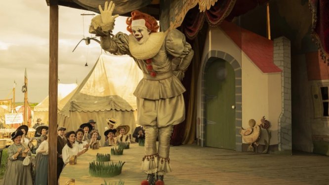 Сцена, разворачивающаяся в 1908 году, поставлена так, что зритель невольно замирает в ожидании. Ожидании того момента, когда улыбка Пеннивайза — танцующего клоуна — перестанет быть безобидной и превратится в по-настоящему пугающую. Еще важнее — надежды разглядеть в образе настоящего клоуна, отца Ингрид Керш, некие тревожные признаки, которые могли бы объяснить его природу и судьбу.