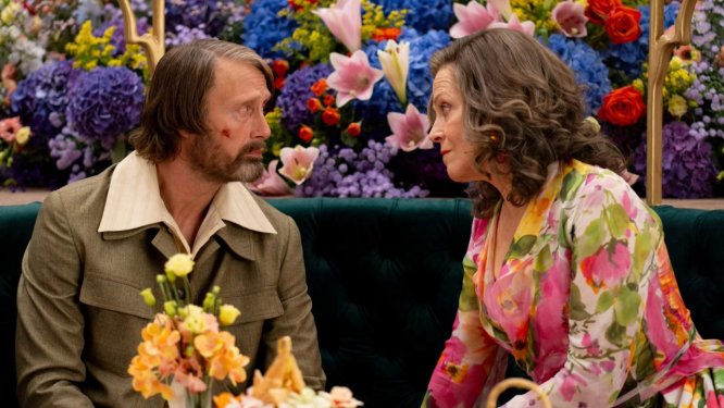 Фуллер явно не пытается маскировать условность происходящего — приём, хорошо знакомый по его предыдущим работам. «Поймать монстра» сознательно отказывается от правдоподобия в пользу яркой, нарочито вычурной визуальной среды и абсурдных образов, формируя собственную слегка сумасшедшую вселенную. Здесь наёмные убийцы размахивают декоративными мушкетами в виде драконов, героиня Сигурни Уивер сочетает смертоносность с обаянием и назначает деловые встречи в самых странных местах, а персонаж Миккельсена настолько одержим дим-самами, что готов рискнуть жизнью ради ещё одной порции.