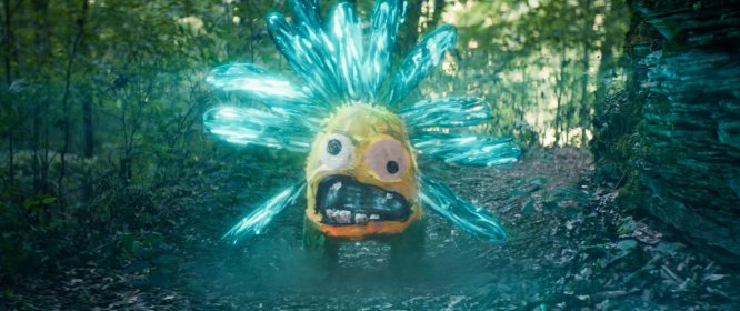 Уорли обращается к теме горя с удивительной мягкостью. Его монстры почти не внушают страха — они скорее нелепые, забавные и иногда трогательные. Большой круглый Дэйв с длинными лапами, вращающимися глазами и сверкающей синей шерстью, крошечные красные паучки с глазами, милый рыжий кот с щупальцами, слепой оранжевый гигант, сопровождаемый павлиноподобным будильником (это действительно стоит увидеть!) — все эти создания существуют благодаря фантазии Эмбер. Она понимает, что карандашные монстры смываются водой, а фигуры, нарисованные восковыми мелками, можно расплавить. В этой простой игровой логике заложена глубокая мысль: страхи можно преодолеть, если разобраться в их структуре.