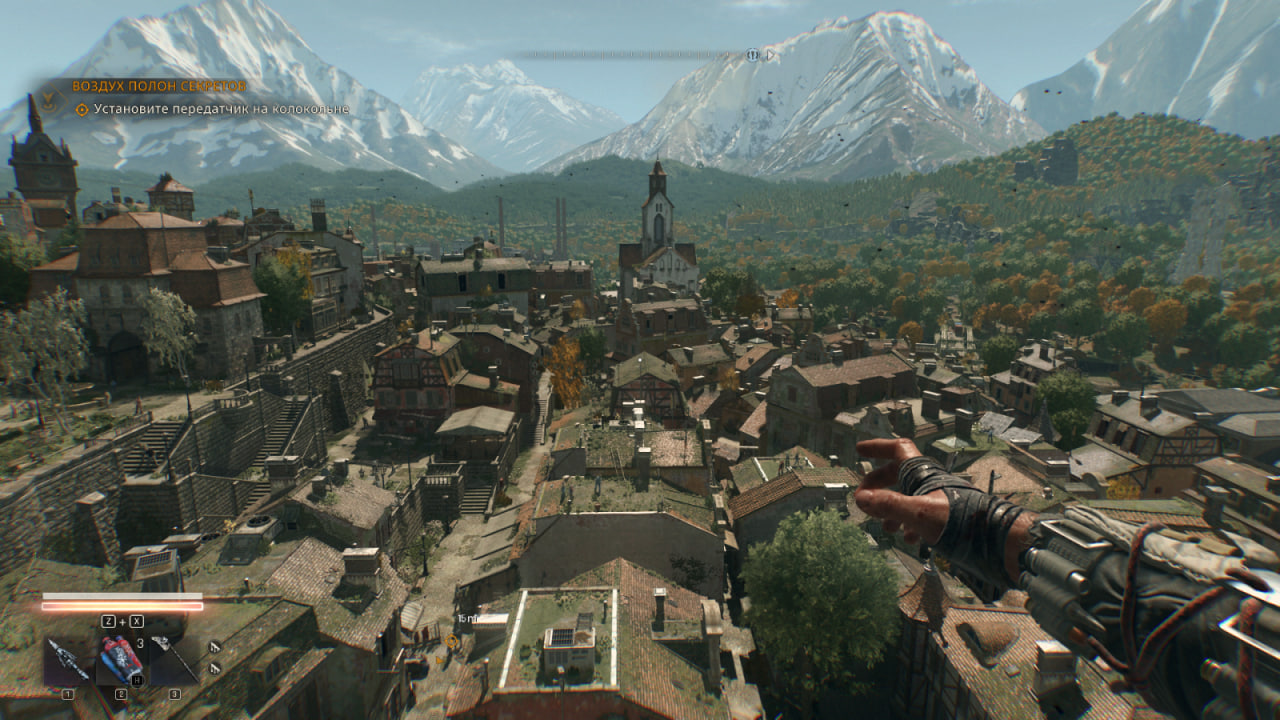 В этом плане разработчики, похоже, перегнули палку. Стараясь вернуть адреналин ночным вылазкам, они лишили игрока большинства способов противостоять прыгунам: автомобиль больше привлекает внимание, чем спасает, а ультрафиолетовых фонарей и грибов, позволяющих видеть в темноте, у Крэйна нет. Левел-дизайн тоже мешает уличной акробатике, особенно после заката. Кастор Вудс — небольшой городок в Альпах, вдохновлённый «Твин Пиксом» и ставший местом действия The Beast — выглядит промежуточным вариантом между Старым Городом Харрана и Вилледором из сиквела. Здесь нет плотной урбанистики, располагающей к кульбитам: в основном поля, леса, горы, вышки рейнджеров и точечная застройка. В Харране легко входить в состояние потока, а в Кастор Вудс паркур превращается в постоянную борьбу с расстояниями между зданиями, теряя динамику и удовольствие. В сумерках это ещё и смертельно опасно, при этом необходимости в постоянных вылазках нет: опыта от побочных миссий хватает для полной прокачки Крэйна, а после 19:00 безопаснее отдыхать в ближайшей вышке.