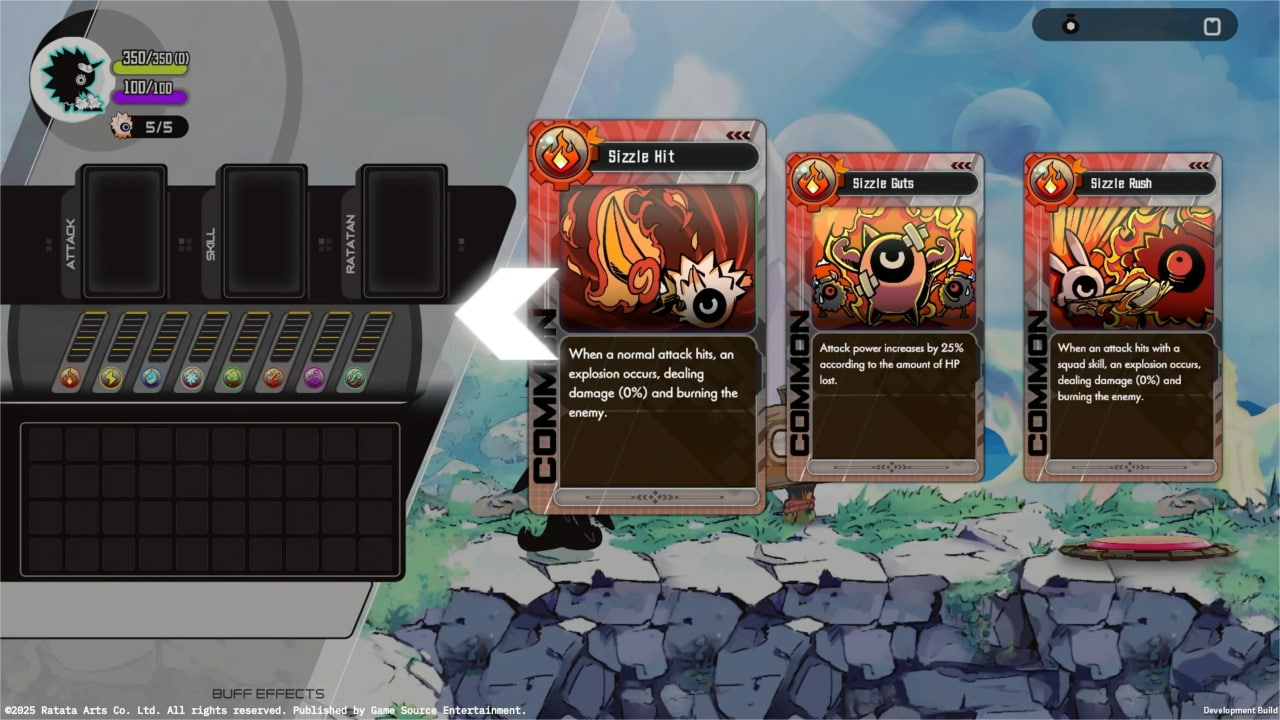 Поскольку Ratatan — это roguelight, игроку предстоит формировать «билд» прямо во время забега. В игре это выражается через случайные бонусы в виде карт разных стихий: одни повышают урон, другие добавляют эффекты атаки, третьи, например, снижают стоимость покупок в магазине. На уровнях можно встретить торговца, который за небольшую плату предлагает бонусы — от карт до новых кобунов или лечебных предметов.